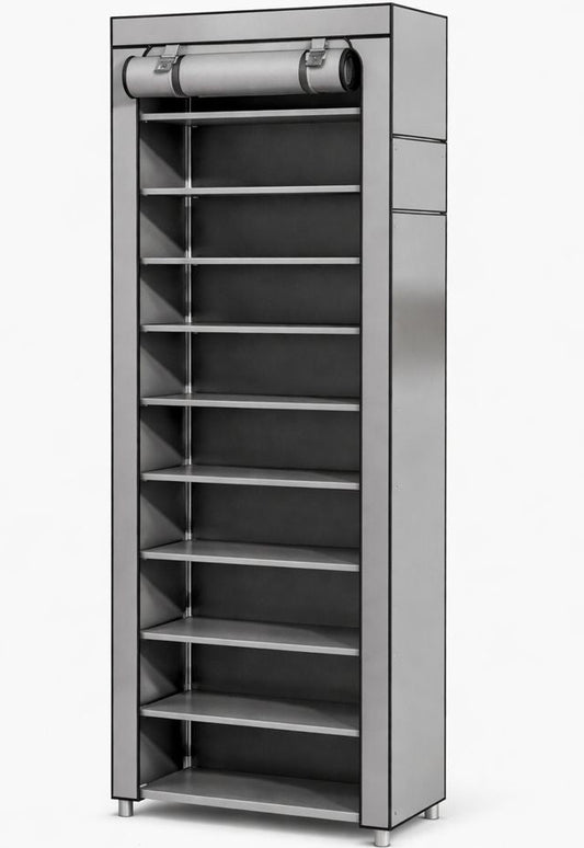 Zapatero Armable 9 Pisos Organizador De Zapatos Armable 30 Pares Con Tubos Metalicos Revestimiento En Tela Diseño Vertical Modular Desmontable
